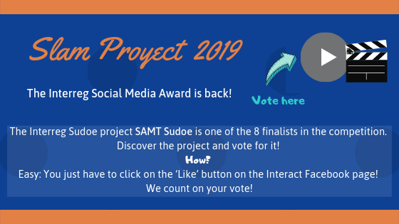 Una junta de profesionales de comunicación y capitalización revisó 40 candidaturas de proyectos y seleccionó a 8 proyectos finalistas para la edición 2019 de dicha competición. El proyecto SAMT Sudoe es uno de ellos, un proyecto que persigue la creación de redes y vínculos entre empresas, centros de I+D, educación superior, organismos públicos para promover nuevas tecnologías KET (Key Enabling Technologies) dentro del espacio SUDOE, haciendo hincapié en la fabricación aditiva (impresión 3D) y los materiales avanzados. Puede votar por este proyecto hasta el 30 de septiembre pinchando en el botón Like, en la página Facebook de Interact. La final de Interreg Project Slam tendrá lugar en Bruselas durante la Semana Europea de las Regiones y Ciudades (7-10 de octubre). Mientras tanto, pinche en el enlace debajo: ¡contamos con su voto! 🙂