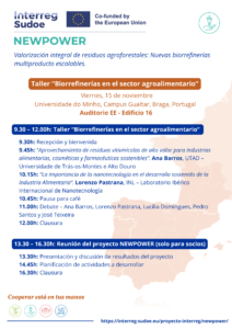El próximo 15 de noviembre se celebrará en la Universidade do Minho, Braga, Portugal, un Taller “Biorrefinerías en el sector agroalimentario” que se enmarca en el proyecto europeo NEWPOWER del programa Interreg Sudoe.