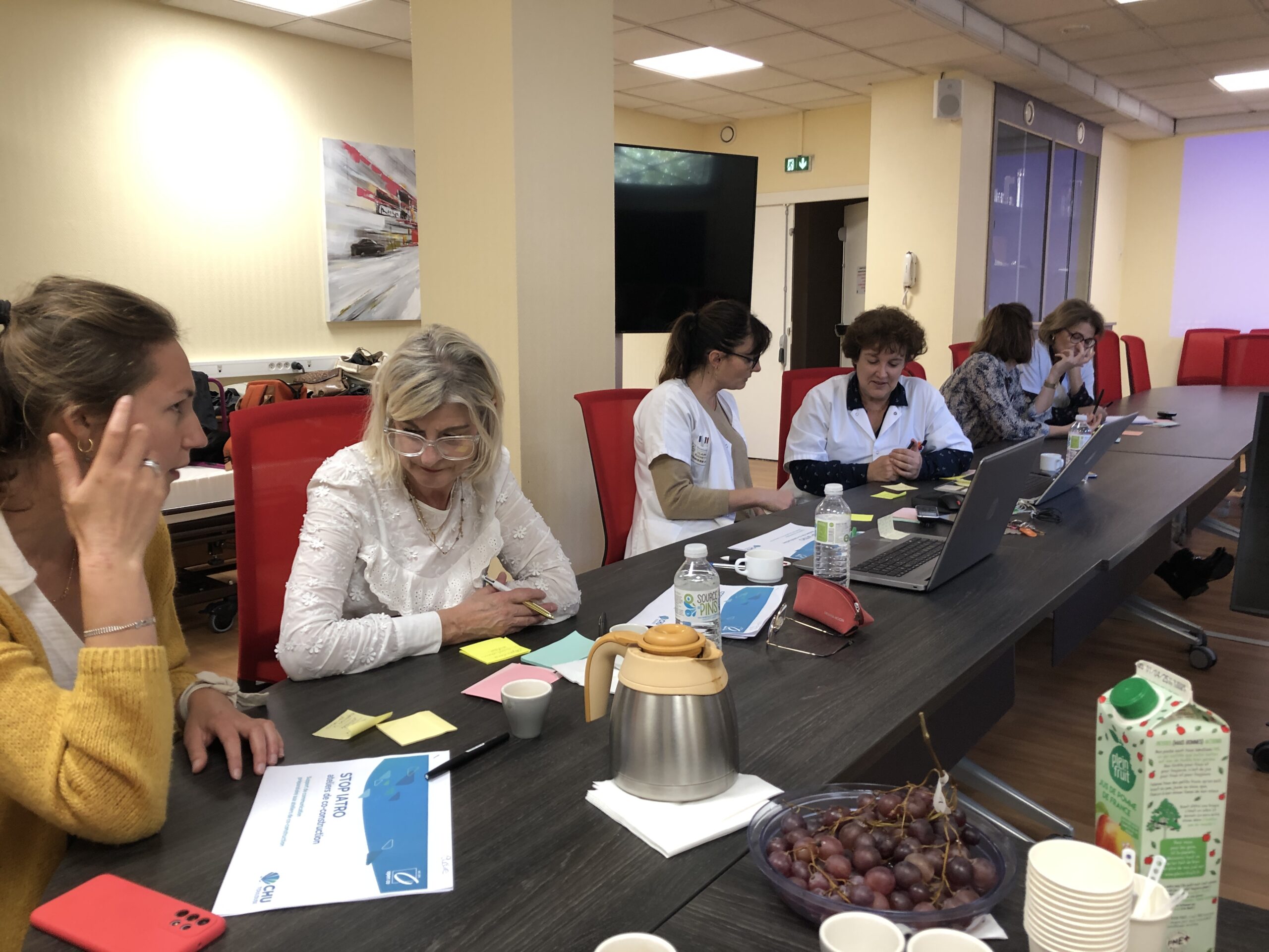 Meanwhile, workshops were organized in Occitania (France), in collaboration with FECOP. The pharmacy department of the Toulouse University Hospital was pleased to organize collective intelligence workshops with the participation of healthcare professionals from the Lavaur Hospital Center, the Geriatric Hospital, and the Adour Madiran Health Center in Vic-en-Bigorre, as well as the Multi-Professional Health Center (MSP) Arsenal Castors in Tarbes. These workshops, led by OpenCommunities Consulting, provided a rich environment for exchanges and reflections.