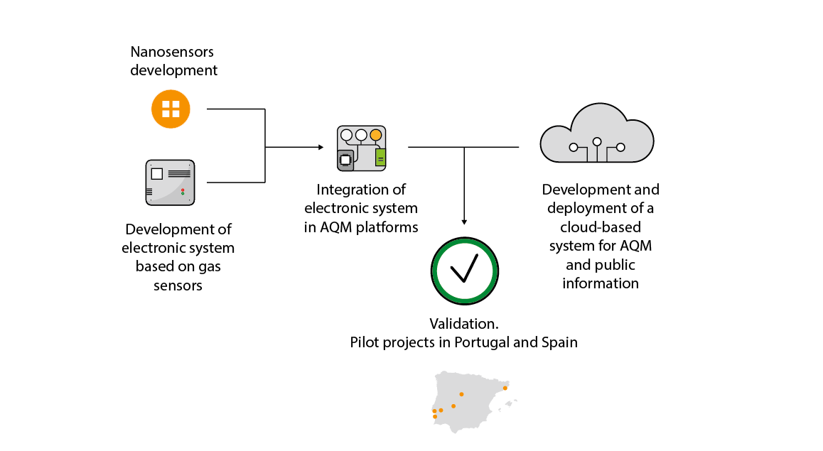 NanoSen-AQM provides a solution to monitor the environmental pollution through a system to control the air quality in real time. Based on an electronic system composed by low cost and low consumption sensors which are developed thanks nanotechnologies and microelectronics, NanoSen-AQM guarantees very precise time-space data which allow reliable forecasts on air quality.