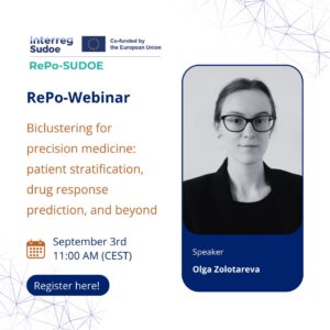 Nos alegra anunciar una nueva sesión del ciclo de seminarios online RePo-Webinars, organizados en el marco del proyecto RePo-SUDOE, dedicado al reposicionamiento de fármacos. Cada sesión reúne a expertos destacados que nos presentan enfoques computacionales, herramientas y metodologías clave en el ámbito del drug-repurposing.