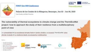 Du 2 au 6 juin, l’ ICGC , le service géologique de Catalogne et un partenaire du consortium ont participé au 1er congrès de recherche et d’innovation géothermique au Portugal et en Espagne ( Geo-RIN ), qui se tient à Benasque , et le projet ThermEcoWat est présent.