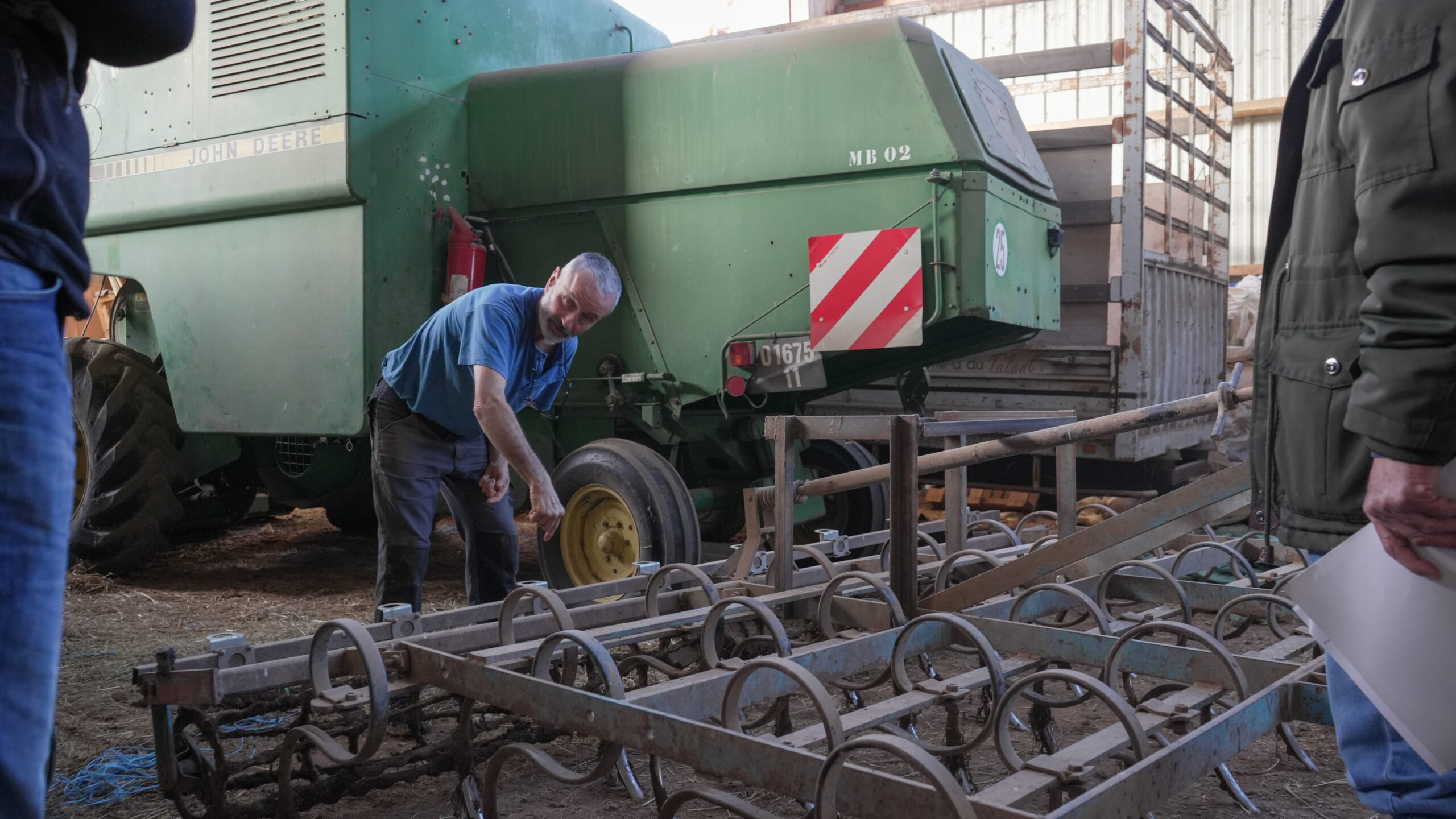 Le deuxième jour, le consortium s’est rendu dans le Tarn. L’objectif de cette visite était de visiter une ferme d’élevage où Thierry Maffre et sa femme, Elena, ont fait une démonstration des machines de récolte des semences de graminées sauvages (moissonneuse, « butineuse» et raboteuse). Certaines de ces machines sont modifiées par Thierry, adaptées aux besoins spécifiques de sa terre et à la collecte des semences de graminées locales.