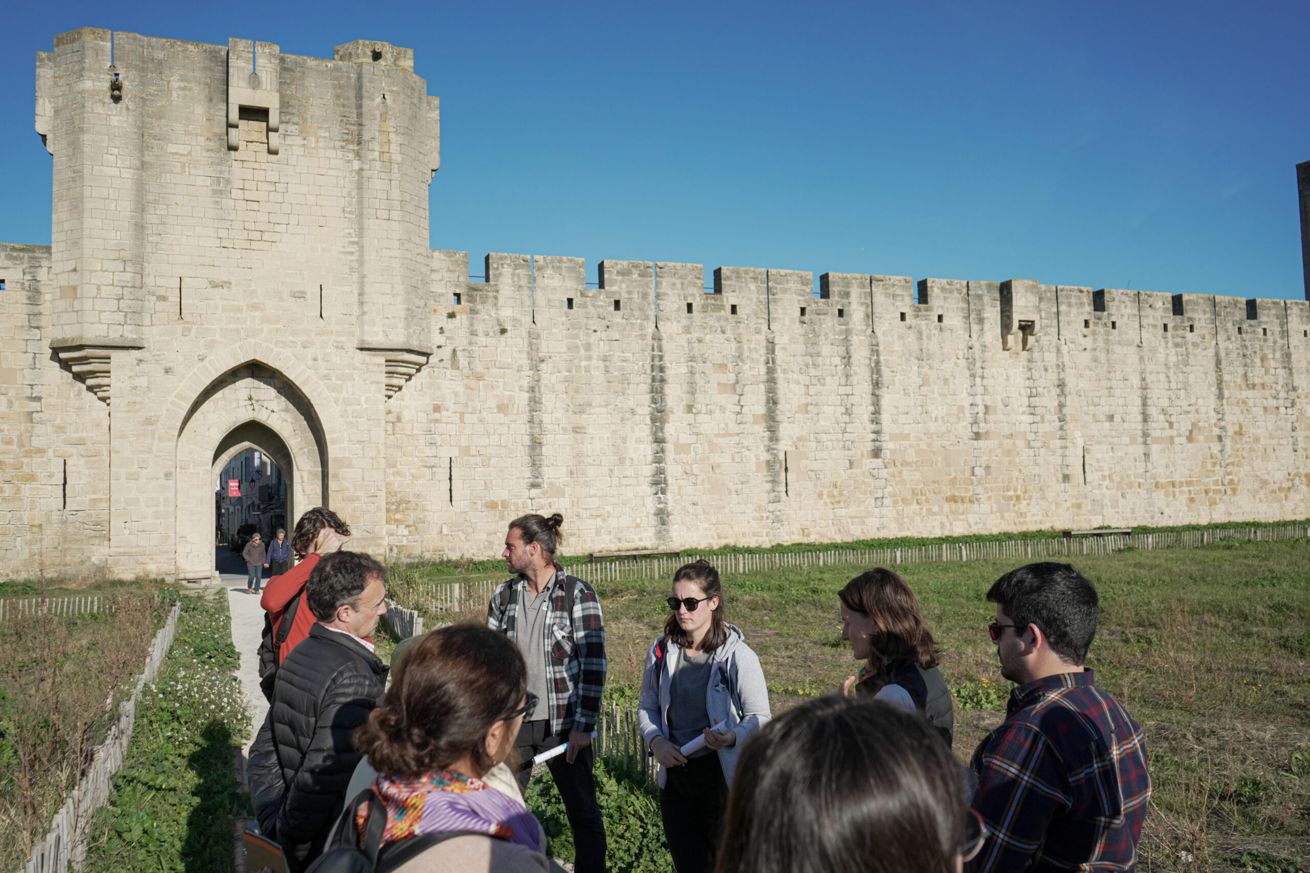 La dernière visite était une prairie restaurée à d’Aigues-Mortes, près de Montpellie afin d’y voir un transfert de foin effectué dans une prairie située à la périphérie de la vieille ville. Delphine Midy, technicienne du CEN Occitanie, a expliqué aux partenaires les différentes étapes de la prairie et les différents détails du foin. Le consortium s’est ensuite rendu à Mauguio, où se trouve le site pilote du CEN Occitanie, où Mario Klesczewski, employé du CEN, a présenté le site pilote et les résultats attendus. Pour conclure la visite d’étude, les partenaires ont visité la prairie « fontaine » de Pérols, où Mario a pu à nouveau montrer au consortium le travail réalisé.