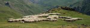 El siguiente paso ha sido instalar un pastor eléctrico que proteja los árboles, lo que ha permitido introducir un rebaño de ovejas de raza Xisqueta mediante un sistema de pastoreo racional Voisin (PRV). Este método de pastoreo, consistente en utilizar el rebaño con alta densidad (muchas ovejas en una superficie pequeña) con una alta rotación (las ovejas permanecen muy poco tiempo en cada área pastoreada) está diseñado para regenerar el suelo, mejorar la fertilidad natural y cerrar ciclos de nutrientes a través de la interacción controlada entre los animales y la vegetación.