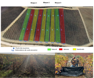Respecto a la parcela experimental de Duorum, situada en el Alto Douro (Vila Nova de Foz Côa, Portugal), en noviembre se inició un ensayo con el fin de obtener resultados comparativos entre el suelo recubierto (sembrado y natural) y el movilizado sobre la diversidad vegetal y faunística, el control biológico de plagas, la erosión y los niveles de materia orgánica en el suelo. Para establecer el momento de inicio, antes de la instalación se realizó la recolección de suelo para análisis físico-químico y biológico. Una vez establecidas las modalidades, se procedió a la instalación de pantallas de retención del suelo para medir la erosión.