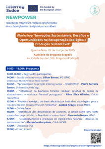 No próximo dia 26 de março, realiza-se no IPB-Instituto Politécnico de Bragança, Bragança, Portugal, um workshop sobre “Inovações Sustentáveis: Desafios e Oportunidades na Recuperação Ecológica e Produção Sustentável”, no âmbito do projeto europeu NEWPOWER do programa Interreg Sudoe.
