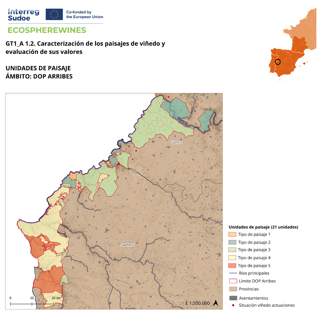 Numa segunda fase, foi efectuada uma análise exaustiva das paisagens vitícolas em quatro zonas-piloto do ECOSPHEREWINES: Mariñas-Betanzos (ES), Arribes del Duero (ES), Alto Douro (PT) e Gaillac-Tarn (FR). Utilizando uma metodologia sistemática e a abordagem de Avaliação do Carácter da Paisagem (ACL), procurámos compreender o carácter distintivo destas paisagens, considerando factores naturais, históricos e sociais.