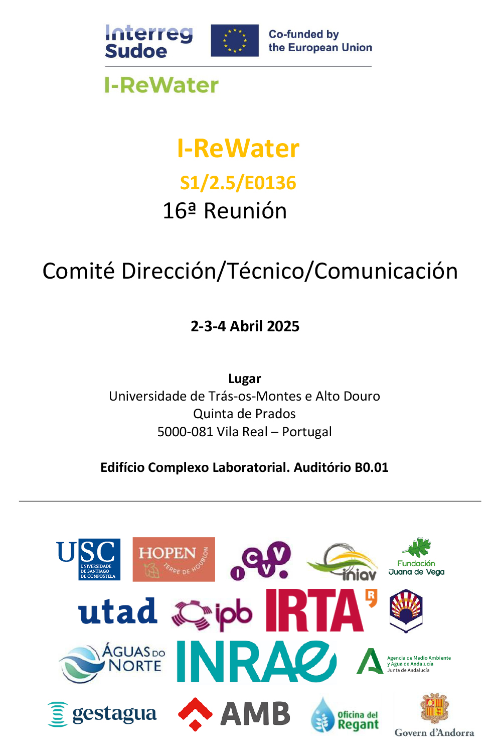Por fim, na manhã de sexta-feira, dia 4, terá lugar a parte final da comissão técnica e de gestão do I-ReWater para discutir questões de comunicação, administrativas e financeiras.