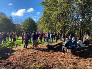 Antes deste dia, a equipa portuguesa realizou uma ação de sensibilização e participação comunitária em Terras do Bouro, no âmbito das “VI Jornadas Técnicas sobre os Carvalhos”, dedicadas ao tema da sustentabilidade (25-27 de outubro de 2024). A conferência foi organizada pelo Agrupamento de Baldios da Serra do Gerês; Associação de Compartes de Campo do Gerês; LIPOR Universidade de Trás-os-Montes e Alto Douro/CITAB; AMO Portugal; Sociedade Portuguesa de Ecologia; e contou com a presença da comunidade local (80 pessoas), representantes da Câmara Municipal de Terras de Bouro e professores do ensino básico e secundário.