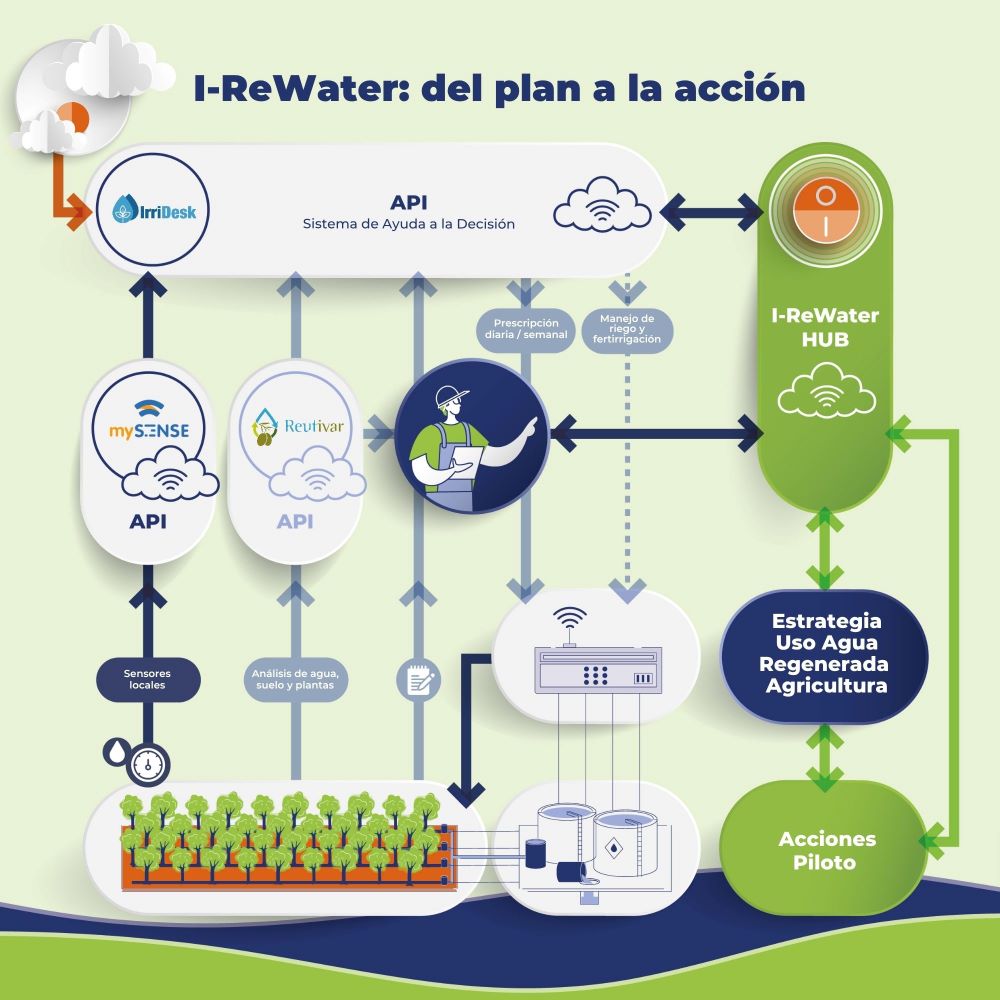 La información en tiempo real que devuelven estos sensores (junto con los resultados de las análiticas de agua y suelo, y el análisis foliar de los cultivos en las fases críticas de desarrollo), serán la base para desarrollar la futura herramienta de ayuda a la decisión de I-ReWater (Decision Support System (DSS).